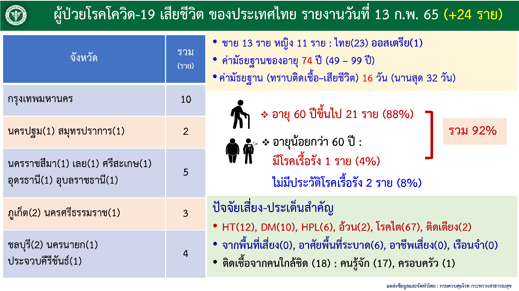 รายละเอียดผู้เสียชีวิตของประเทศไทยวันอาทิตย์ที่ 13 กุมภาพันธ์ 2565 จำนวน 24 ราย