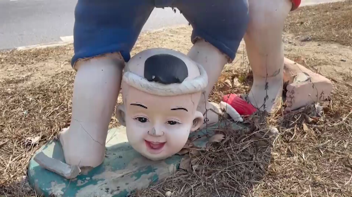 เสียดายงบ! วอนซ่อม "ตุ๊กตาชาววังยักษ์" ปล่อยพังแบบหลอนๆ หัวขาดอยู่กลางถนน