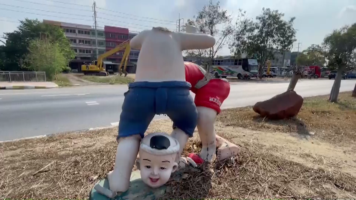 เสียดายงบ! วอนซ่อม "ตุ๊กตาชาววังยักษ์" ปล่อยพังแบบหลอนๆ หัวขาดอยู่กลางถนน