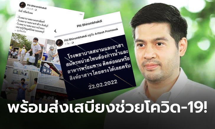 โพสจากเฟสบุ๊คของ Piti Bhirombhakdi "โรงพยาบาลสนามและอาสาสมัครหน่วยไหนต้องการน้ำและอาหารพร้อมทาน ติดต่อผมหรือสิงห์อาสาฯโดยตรงได้เลยครับ 22.02.2022"