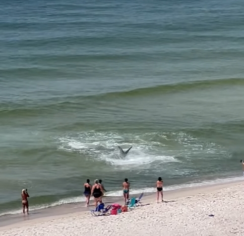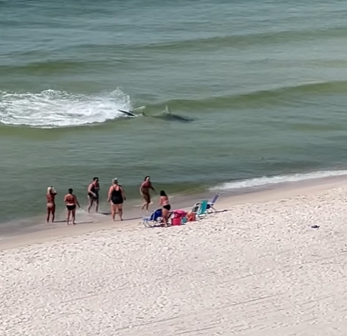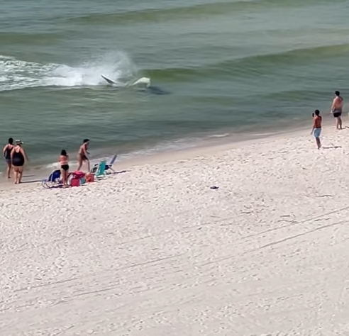 คลิปหาดูยาก! ฉลามไซส์พี่เบิ้ม โผล่น้ำตื้นไล่งับกระเบน นทท.หนีตายขึ้นชมฉากบู๊บนฝั่งนทท.แตกตื่นหนีตาย ฉลามหัวค้อนตัวเบอเร่อ โผล่น้ำตื่นไล่ล่าปลากระเบน นอกชายฝั่งในสหรัฐฯ