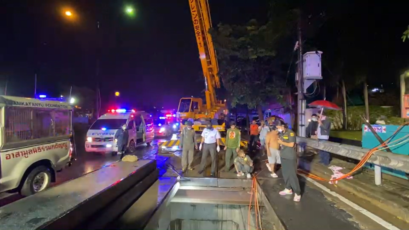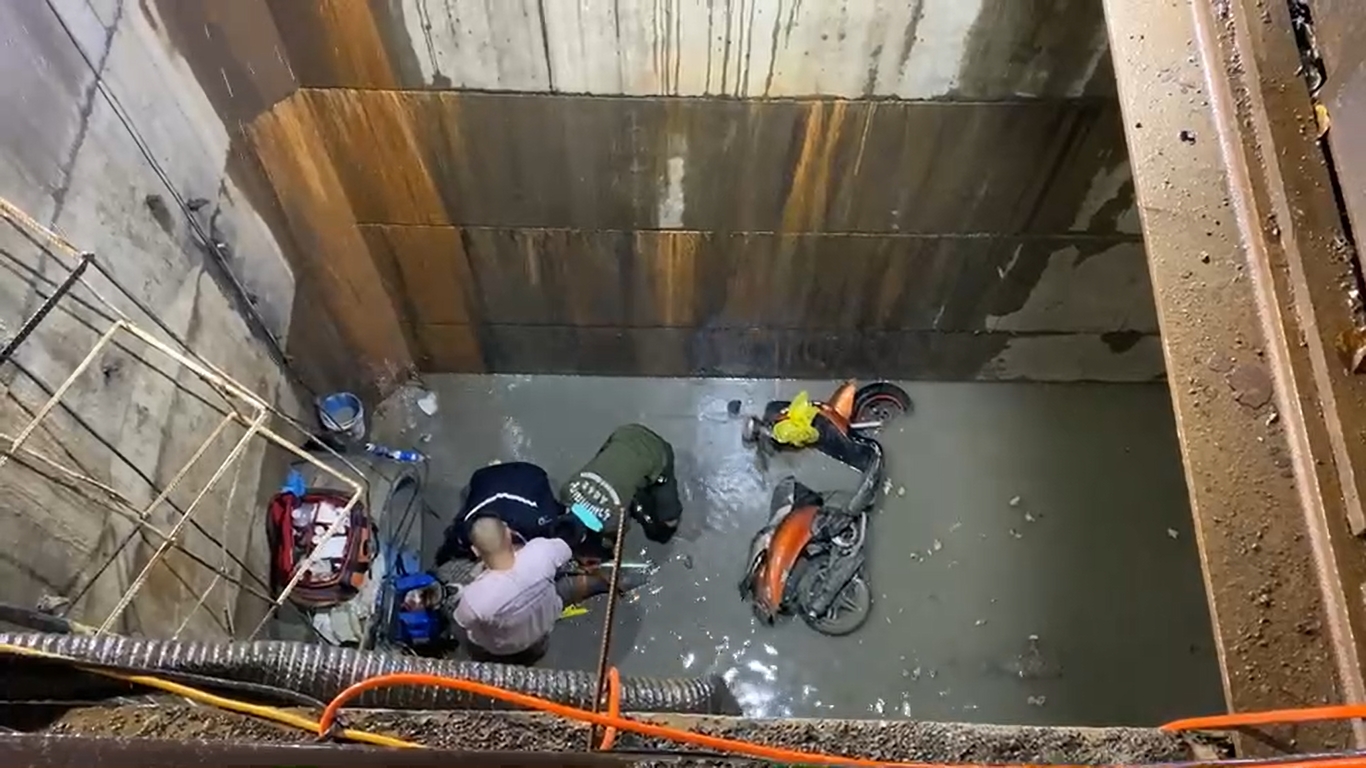 กู้ภัยโรยตัวช่วย หนุ่มขี่ จยย. ย้อนศรพุ่งตกบ่อพักท่อประปา ลึก 6 เมตร จมโคลนทั้งคนทั้งรถกู้ภัยโรยตัวช่วยชีวิต หนุ่มขี่ จยย. ย้อนศรพุ่งตกบ่อพักท่อประปา ลึก 6 เมตร ปากซอยรัชดา-ท่าพระ 7/1 คนงานยันปิดการจราจรแล้ว