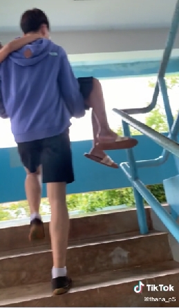 แก๊ง นร.อุ้มเพื่อนขาเจ็บขึ้นสอบ ฟิตจัดก้าวฉับๆ ไม่มีสะดุด แต่ความพีคมันอยู่ตอนขาลง!!เมื่อนักเรียนขาเจ็บวันสอบ เพื่อนอุ้มขึ้นห้องเรียน อีกสองคนถือไม้ค้ำเดินตาม แต่อ้าว.. ขาลงไหงเป็นงี้?!!
