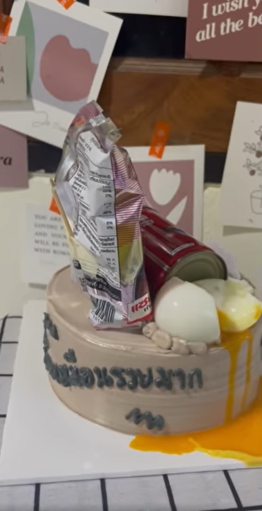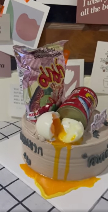 ธรรมดาโลกไม่จำ เค้กสู้ชีวิต ลูกค้าลั่นเอาของจริงวางเลยค่ะ แม่ค้าแถมไข่ต้มยางมะตูมเมื่อแม่ค้าสู้ชีวิต แต่ลูกค้าสู้กลับ อยากได้เค้กบะหมี่กึ่งสำเร็จรูป+ปลากระป๋อง จัดให้ตรงตามบรีฟแบบเป๊ะๆ