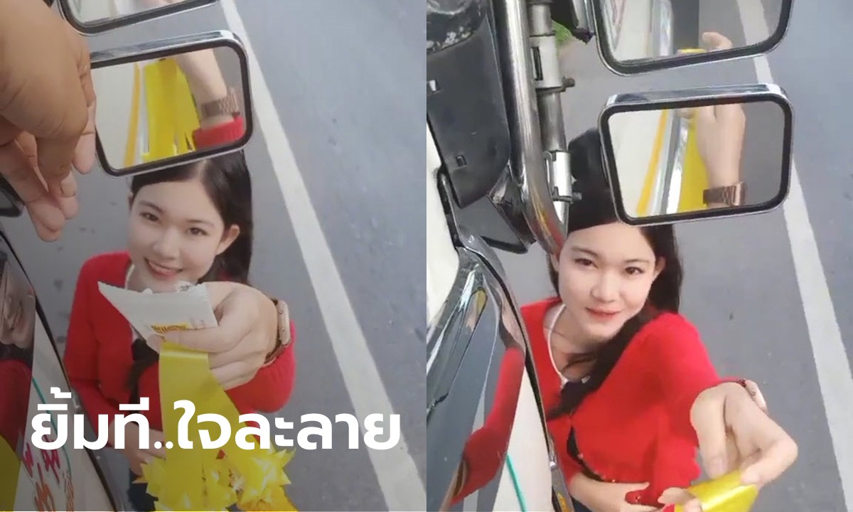 หนุ่มขับสิบล้อ สะดุดความน่ารักแม่ค้าพวงมาลัยริมทาง เจ้าตัวโผล่คอมเมนต์ เขินเลย
