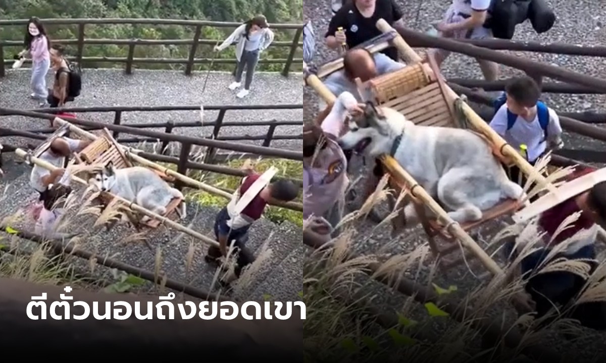 ชาวเน็ตเสียงแตก หญิงจีนจ้างคนแบกหมาขึ้นภูเขา อยากพาไปชมวิวแต่กลัวหมาเหนื่อย