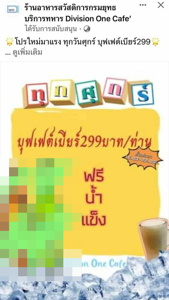 ทัวร์ลง เพจร้านสวัสดิการทหาร โพสต์โปรโมชัน "บุฟเฟต์เบียร์" ล่าสุดชี้แจงแล้ว