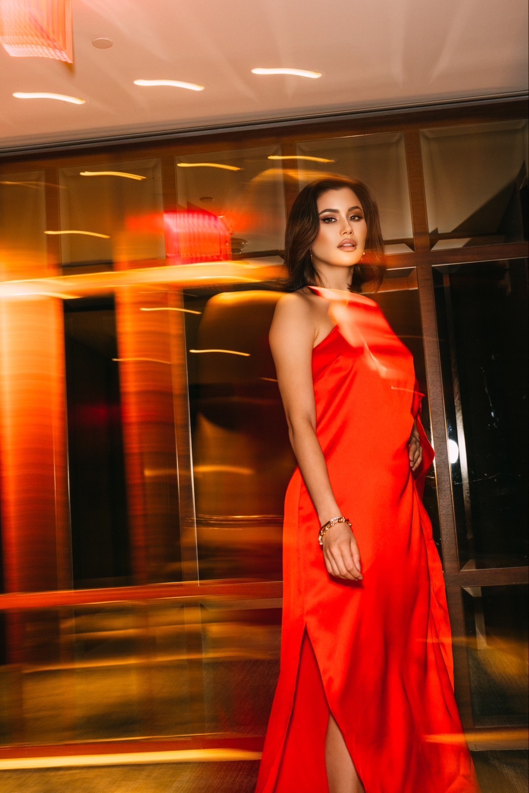ไม่จม! ไม่หาย! ไม่ดรอป! กับลุคดุจนางพญาของ ปู-ไปรยา ลุนด์เบิร์ก ในชุดผ้าซาตินไหล่เฉียงเรียบหรูสีแดงเพลิงจากแบรนด์ Karl Lagerfeld ที่เลือกใส่มาร่วมงาน Met Gala 2023 After Party Karl Lagerfeld ณ โรงแรม The Mark,มหานครนิวยอร์ก
