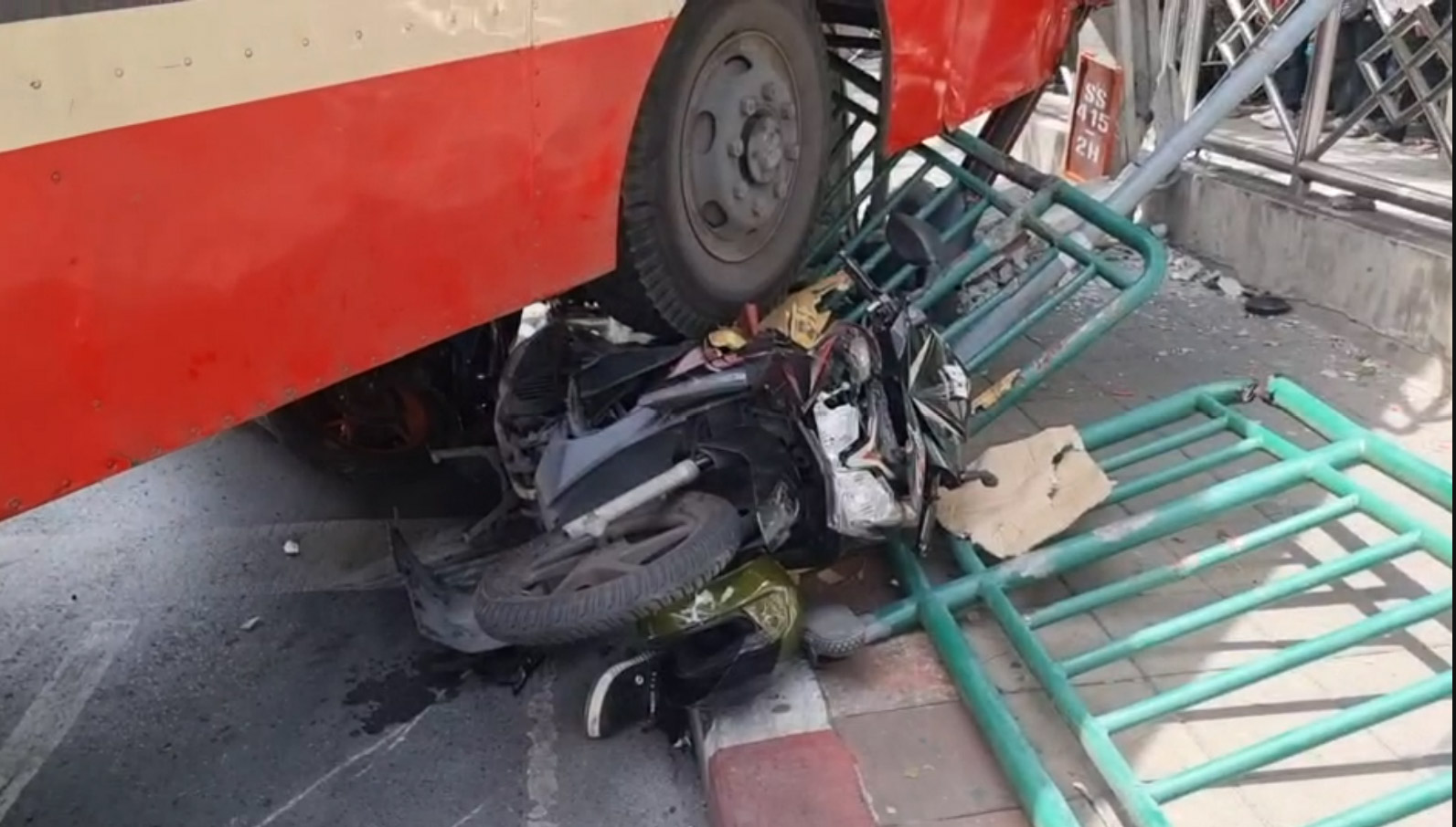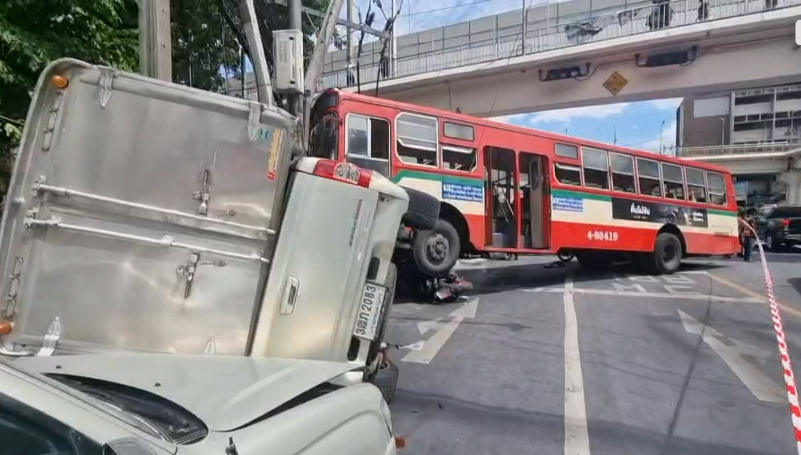 ภายหลังมีการเปิดเผยภาพวงจรปิดบันทึกนาทีรถโดยสารประจำทางสาย 13 ห้วยขวาง - ตลองเตย พุ่งตรงชนรถจักรยานต์ที่จอดติดไฟแดงอยู่ บริเวณสี่แยกประชาสงเคราะห์หรือแยกโบสถ์แม่พระ ก่อนพุ่งไปชนรถกระบะจนพลิกคว่ำ และเสาไฟฟ้าหักโค่น