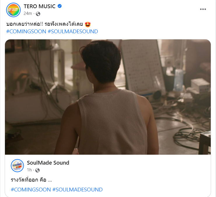 อุ๊ย! ค่าย SoulMade Sound สังกัด TERO MUSIC ออกมาโพสต์ภาพพระเอกหนุ่มปริศนา พร้อมข้อความว่า “รางวัลที่ออกคือ …COMING SOON #SoulMadeSound ” แม้จะเป็นแค่ภาพนั่งหันหลัง ก็ทำสาวๆ ชาวโซเซียลใจละลาย กดไลค์ใส่เลิฟคอมเมนต์กันรัวๆ เพราะดาเมจแรงเกินต้าน ออร่ากล้ามแขนแน่นเข้าตาเหลือเกินพ่อคุณเอ๊ย