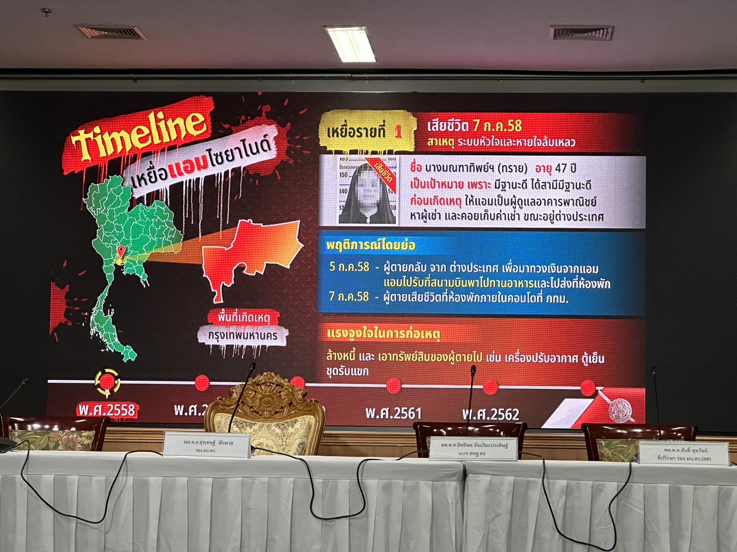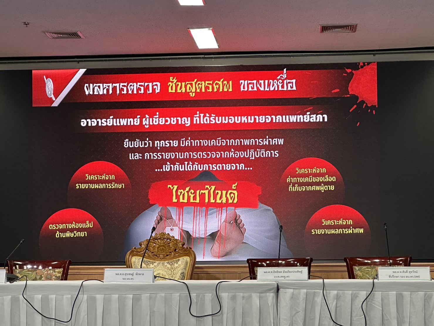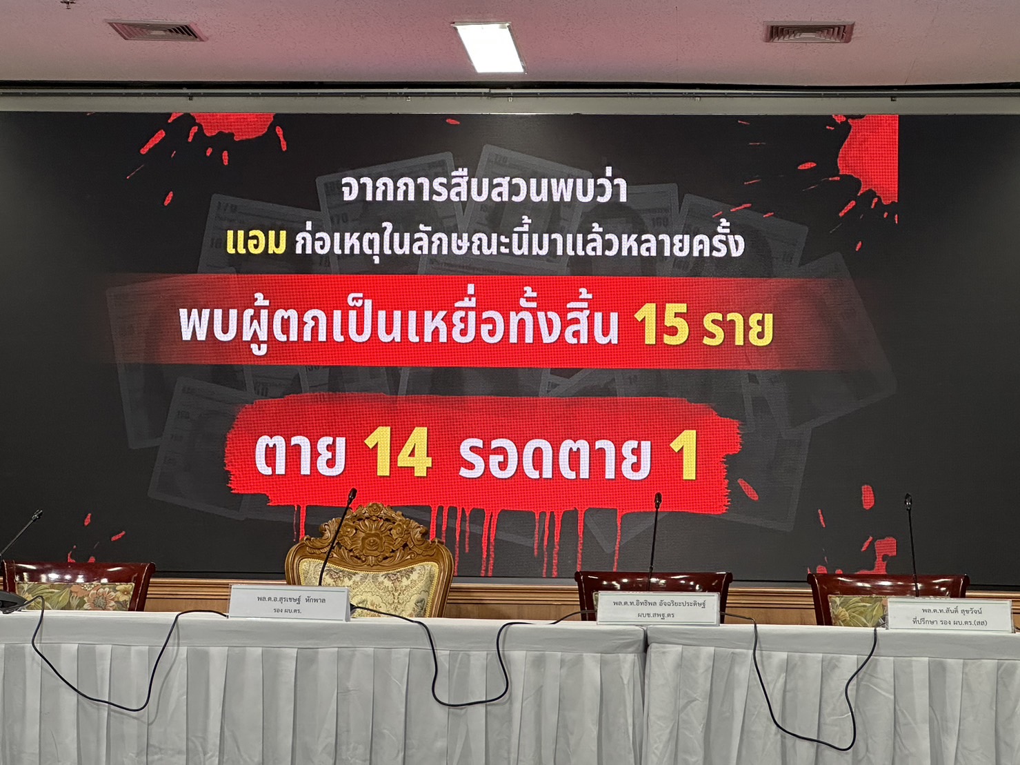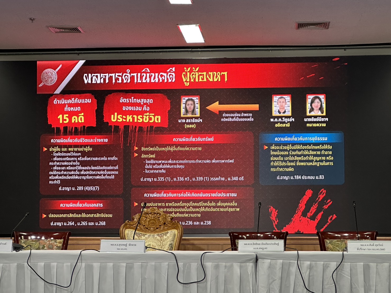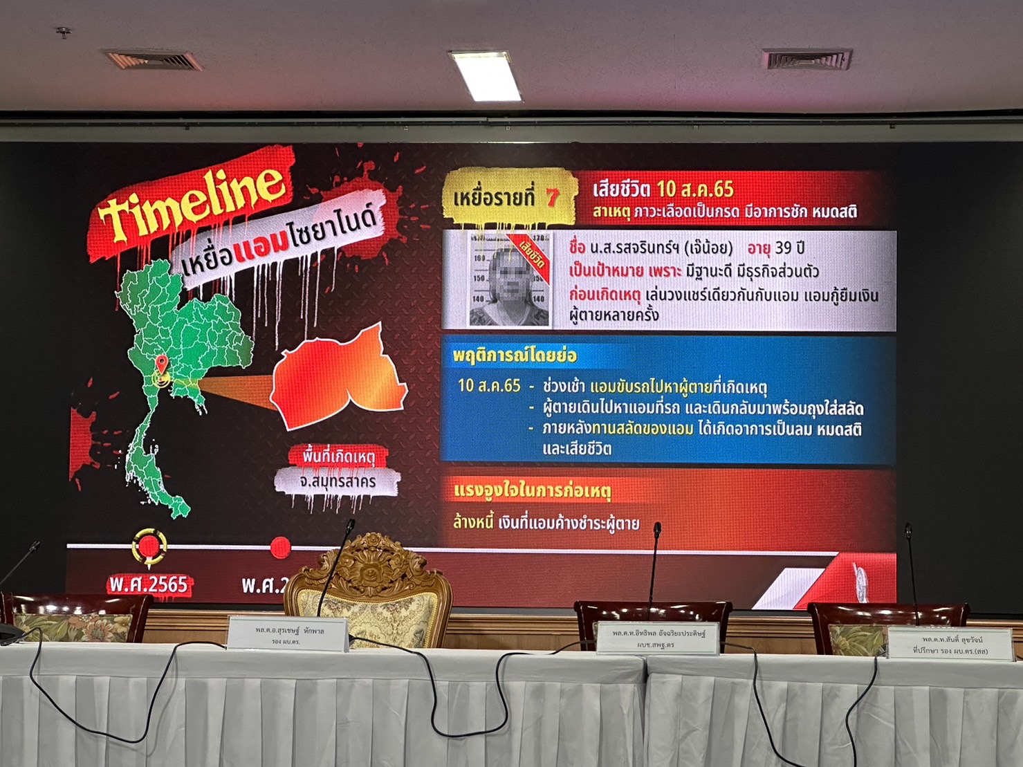 ตำรวจแถลงปิดคดีประวัติศาสตร์ "แอม ไซยาไนด์" พบ 15 คดี ดับ 14 รอดแค่ 1 ราย"บิ๊กโจ๊ก" นำทีมแถลงปิดคดี "แอม ไซยาไนด์" ผู้ต้องหาวางยาฆ่าเจ้าหนี้ 15 คดี ในพื้นที่ 8 จังหวัด ตั้งแต่ 2558-2566 มีผู้เสียชีวิต 14 ราย รอดชีวิต 1 ราย