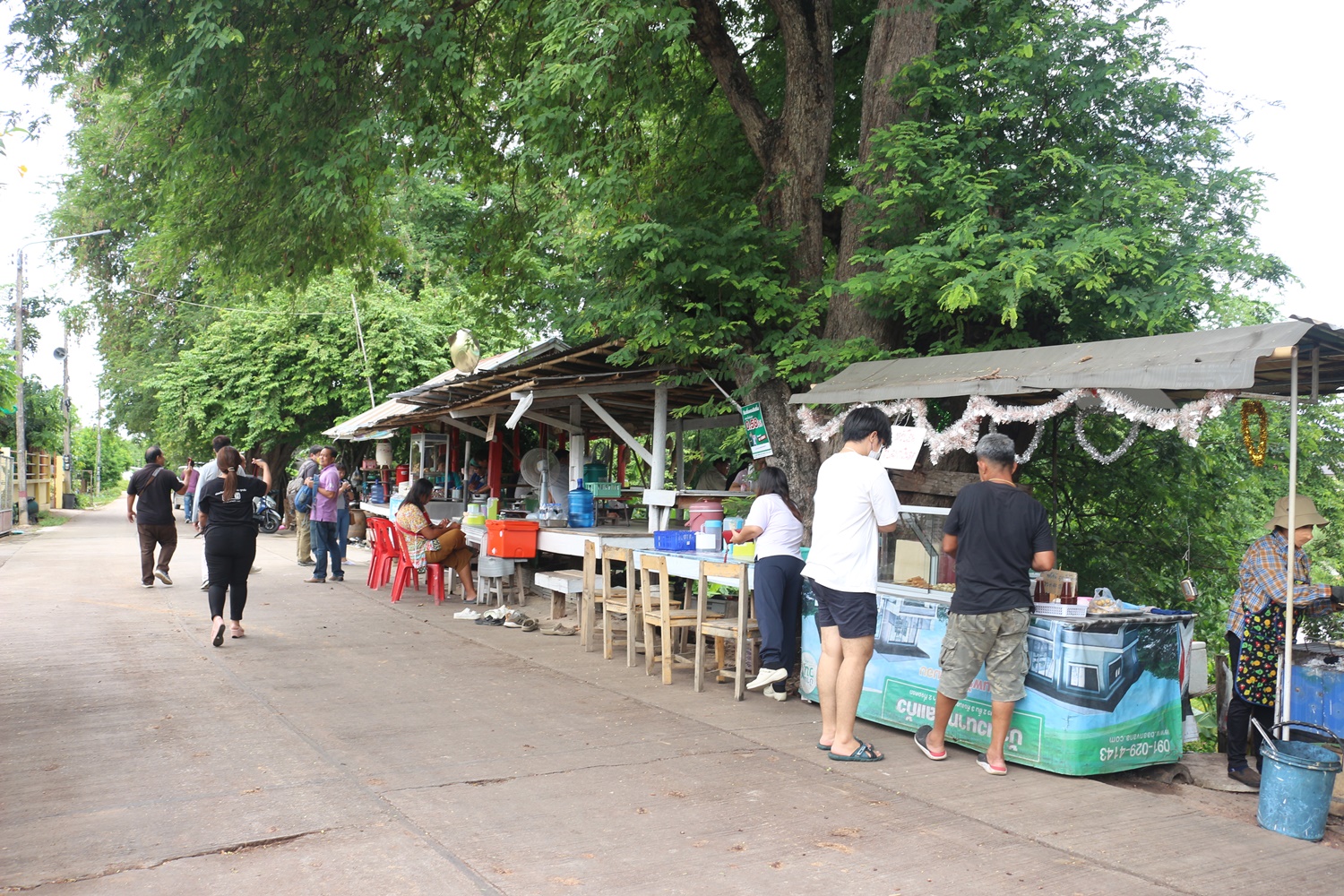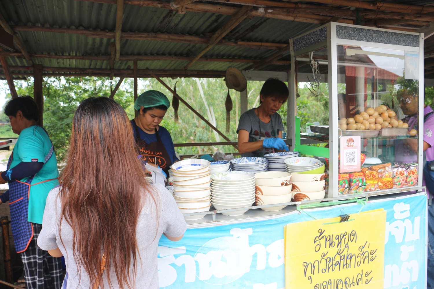 ถ้านั่งทานที่ร้านก็มีให้เลือกหลายมุม จะนั่งทานในบ้าน นั่งชิลข้างทาง หรือจะนั่งห้อยขาริมน้ำ ก็มีให้เลือก แล้วบรรยากาศที่ร้าน เพราะความที่อยู่ริมแม่น้ำน่านจะมีข้อดี คือลมพัดเย็นสบาย นั่งชิลๆ เพลินๆ เปิดขายตั้งแต่ 9 โมงเช้า แต่เวลาปิดไม่แน่นอน เพราะบางที 11 โมงเช้า ก็หมดแล้ว เพราะลูกค้าจะแน่นตั้งแต่ร้านเปิด และตนจะทำเท่าที่ไหว พอของหมดก็ปิด