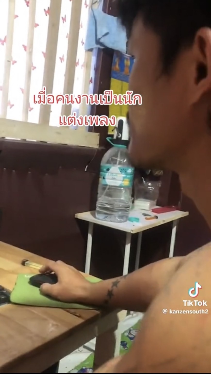 หนุ่มถึงกับทึ่ง เพิ่งรู้คนงานพม่าเป็นนักแต่งเพลง เปิดเพลงให้ฟังสดๆ เพราะซะด้วยหนุ่มไทยทึ่ง ทำงานด้วยกันตั้งนาน เพิ่งรู้คนงานพม่าเป็นนักแต่งเพลง เข้าห้องร้องว้าวกับอุปกรณ์ ก่อนเปิดเพลงให้ฟังสดๆ