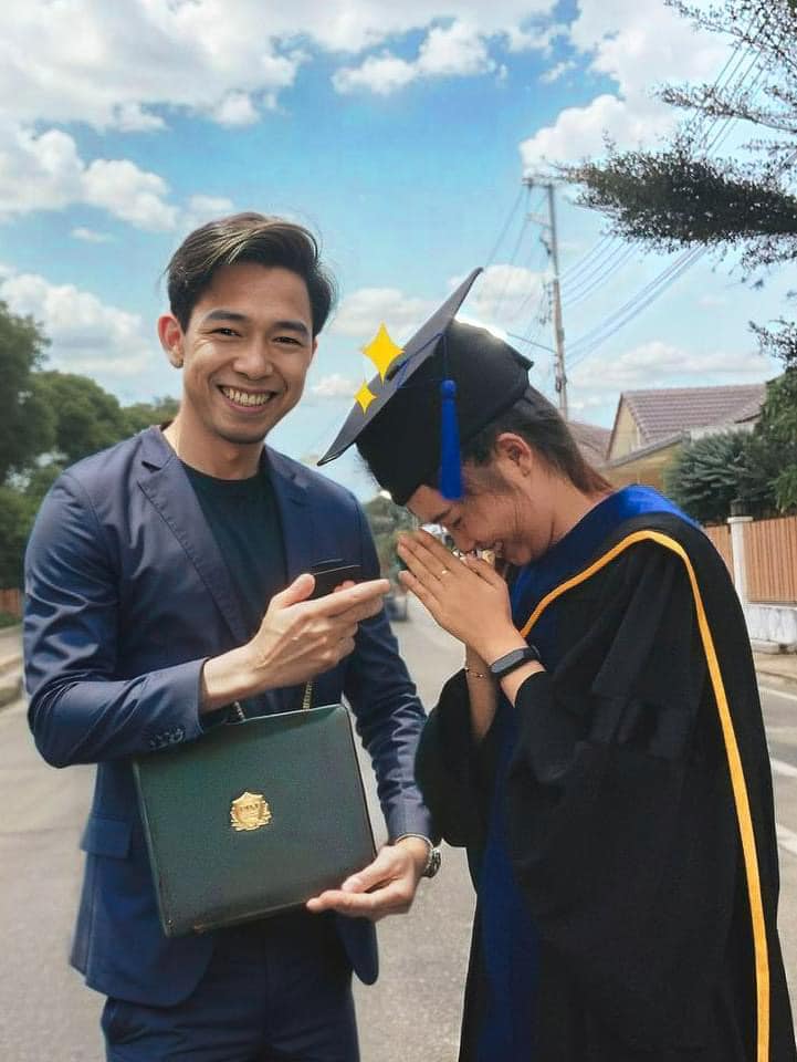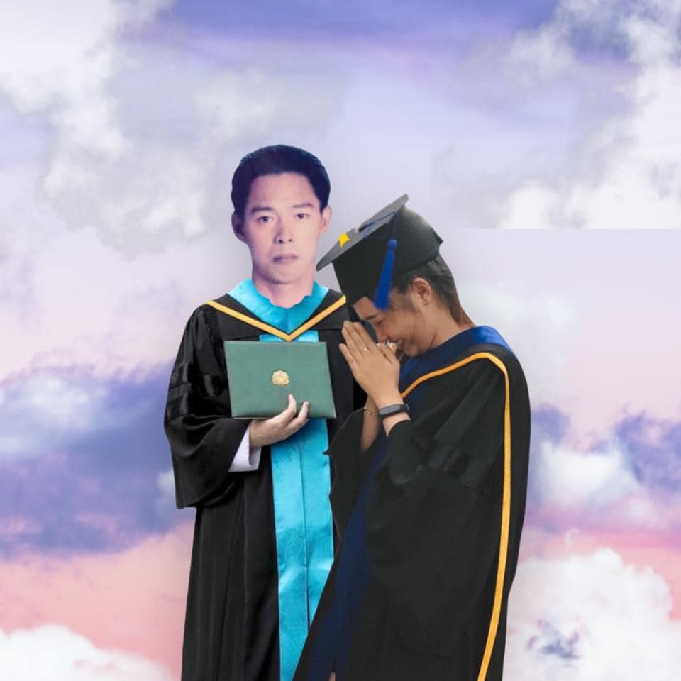 ไวรัลใจฟู โซเชียลสานฝันบัณฑิตป้ายแดง ช่วยตัดต่อรูปพ่อ พามาถ่ายรูปคู่สวมชุดครุยสาวสุดซึ้ง ชาวโซเชียลช่วยตัดต่อรูปพ่อที่จากไป มายืนให้ไหว้ตอนสวมชุดครุยรับปริญญา ได้มีรูปคู่กับพ่อในวันที่ประสบความสำเร็จ