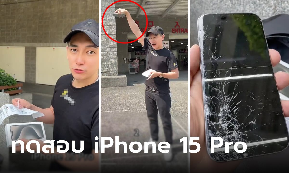ช็อก! หนุ่มถอย iPhone 15 Pro มาหมาดๆ จงใจทำตกพื้นหน้าร้าน พิสูจน์กี่ครั้งจอถึงแตกช็อกกันหมด! คอนเทนต์หัวใจจะวาย หนุ่มซื้อ iPhone 15 Pro มาทำหล่นหน้าร้านซ้ำๆ ทดสอบกี่ครั้งจอถึงจะแตก พร้อมเผยราคาเปลี่ยนหน้าจอใหม่ด้วย