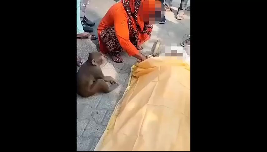 จากคลิปวิดีโอในงานศพที่เมืองอัมโรหะ ในรัฐอุตตรประเทศ ประเทศอินเดีย จะเห็นว่าลิงตัวนี้นั่งเฝ้าอยู่ข้างๆ ร่างของผู้เสียชีวิตไม่ห่าง มันดูเศร้าโศกไม่ต่างกับสมาชิกในครอบครัว และขณะที่ขบวนเคลื่อนตัวไปตามทางหลวงที่มีลมแรง ลิงก็เกาะผ้าสีเหลืองที่คลุมร่างของผู้เสียชีวิตไว้แน่น และตามรายงานของสื่อ มีอยู่ช่วงหนึ่งที่ลิงถึงกับหลั่งน้ำตาออกมาด้วยซ้ำ