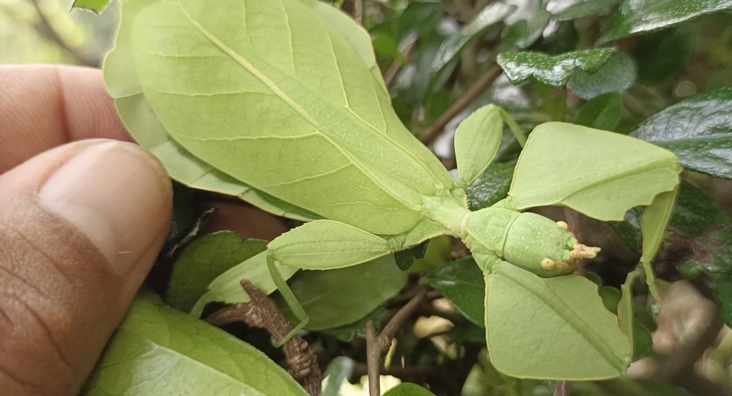 จากการสอบถามนางสมพิทย์ ศรีงาม อายุ 51 ปี เป็นผู้พบแมลงตัวกล่าวเล่าว่าตนเองได้มาทำจิตอาสากวาดใบไม้ ซึ่งขณะที่กวาดใบไม้ไปเรื่อยๆ ก็ถึงกับงงเมื่อใบไม้ที่ตนกวาดมันเดินออกมาได้ ตนก็กวาดไปใหม่ และมันก็เดินออกมาอีก ตนจึงก้มไปดูและมองว่ามันคือใบไม้อะไร แต่สิ่งที่เห็นมันกับเป็นแมลงมีชีวิตรูปร่างคล้ายใบไม้มากซึ่งตนเองตั้งแต่เกิดมาไม่เคยพบเห็นมาก่อนและก็จับมันมาดูพร้อมเรียกให้คนอื่นๆ มาร่วมดูเพราะ เป็นอะไรที่แปลกมาก ไม่น่าเชื่อว่าธรรมชาติแบบนี้ยังมีอยู่จริง สร้างความฮือฮาให้กับผู้ที่พบเห็นเป็นอย่างมากก่อนจะจับมันไปปล่อยไว้บนกิ่งไม้คืนสู่ธรรมชาติของมัน