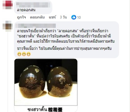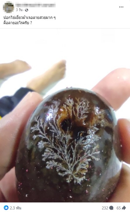 ผู้โพสต์ ระบุว่า "ปอกไข่เยี่ยวม้าเจอลายสวยมาก ๆ คือลายอะไรครับ ?"