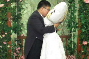 ชายชาวญี่ปุ่นจัดพิธีแต่งงานที่สร้างความงุนงงให้กับแขกเหรื่อทั่วไป เพราะแทนที่เจ้าสาวจะเป็นผู้หญิงสวยในชุดวิวาห์ แต่กลับเป็นหมอนขนาดใหญ่
