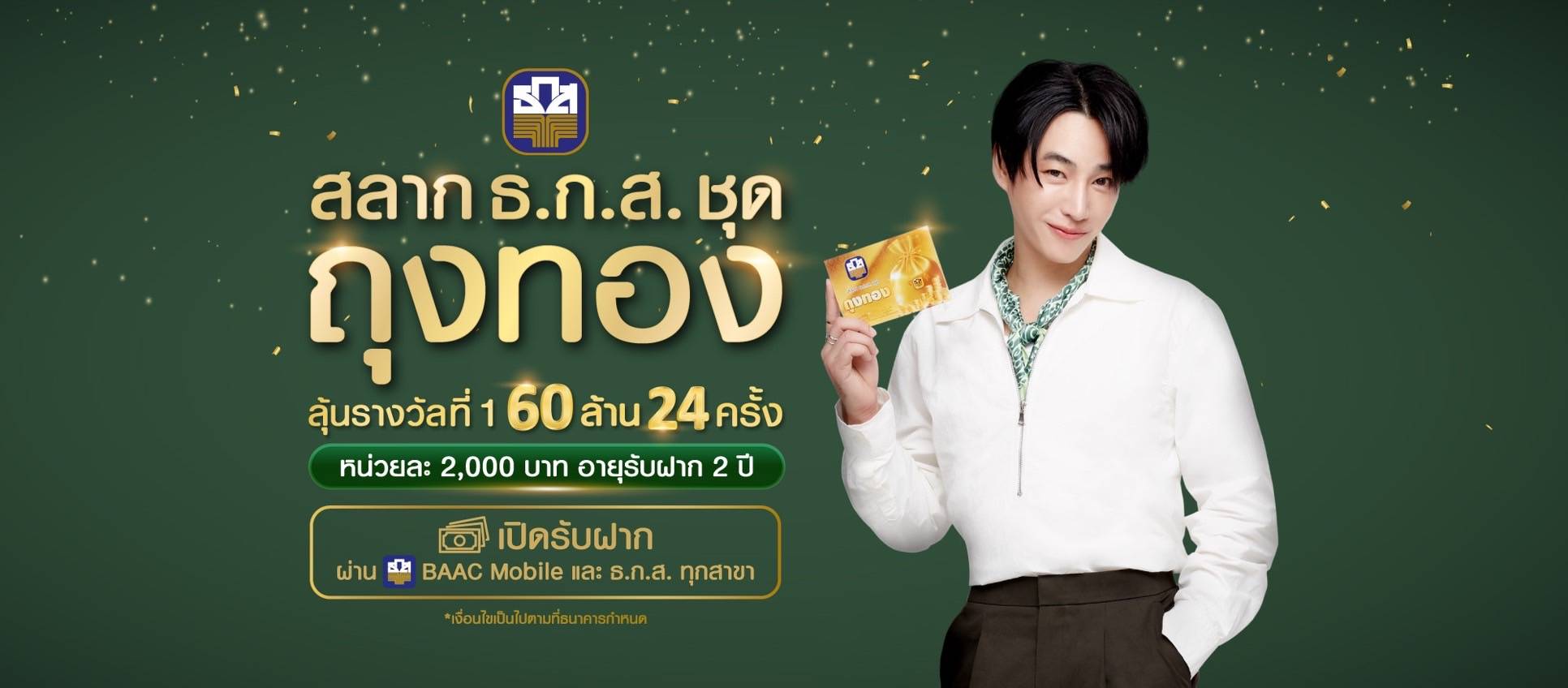 หลังจากปล่อยภาพมาให้แฟนๆ ได้ลุ้นว่าซูเปอร์สตาร์คนไหนจะมงลง!! ขึ้นแท่นพรีเซนเตอร์ของ ธ.ก.ส. หรือธนาคารเพื่อการเกษตรและสหกรณ์การเกษตร ล่าสุด ธ.ก.ส. ได้ประกาศข่าวดีส่งท้ายปี 2566 แบบปังขั้นสุด คว้าตัวซูเปอร์สตาร์ชื่อดังของเมืองไทย “เป๊ก-ผลิตโชค อายนบุตร " มารับตำแหน่งพรีเซนเตอร์คนแรกพร้อมชวนแฟนๆ เริ่มนับหนึ่งด้วยการออมเงินลุ้นรางวัลมูลค่า 60 ล้านบาท ลุ้นได้ถึง 24 ครั้งทุกหน่วยที่ฝาก และร่วมฉลองครบรอบวันสถาปนาก้าวสู่ปีที่ 58 ในกิจกรรม “ผลิตโชคชวนฟินกับถุงทอง” จากแคมเปญ “สลาก ธ.ก.ส. ชุดถุงทอง” ที่มีวงเงินรวมสูงถึง 100,000 ล้านบาท