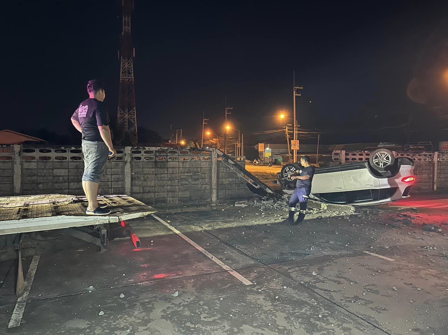 2 สาวพี่น้องไปดูคอนเสิร์ตดัง เบนซ์ซิ่งชนดับสยองคู่ ตัวขาดครึ่ง รถหรูพุ่งทะลุกำแพง