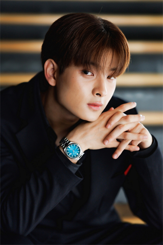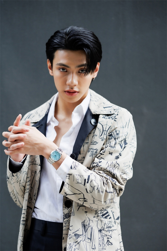 ด้าน ภีม วสุพล หล่อไม่แพ้กันกับ Tsuyosa หน้าปัดสีเทอร์ควอยซ์ แมตช์กับลุคเท่กับโค้ทยาวลายกราฟิก ซึ่งหนุ่มภีมเผยว่า “นาฬิกาช่วยคอมพลีทลุคให้ดูโดดเด่นขึ้นได้ ส่วนตัวผมชอบสีฟ้าอยู่แล้ว ผมว่าหน้าปัดนาฬิกาที่มีสีสันก็ช่วยให้ลุคดูสนุกขึ้นด้วย และด้วยดีไซน์เรียบหรู กึ่งสปอร์ต ก็ทำให้แมตช์กับเสื้อผ้าได้หลายสไตล์”