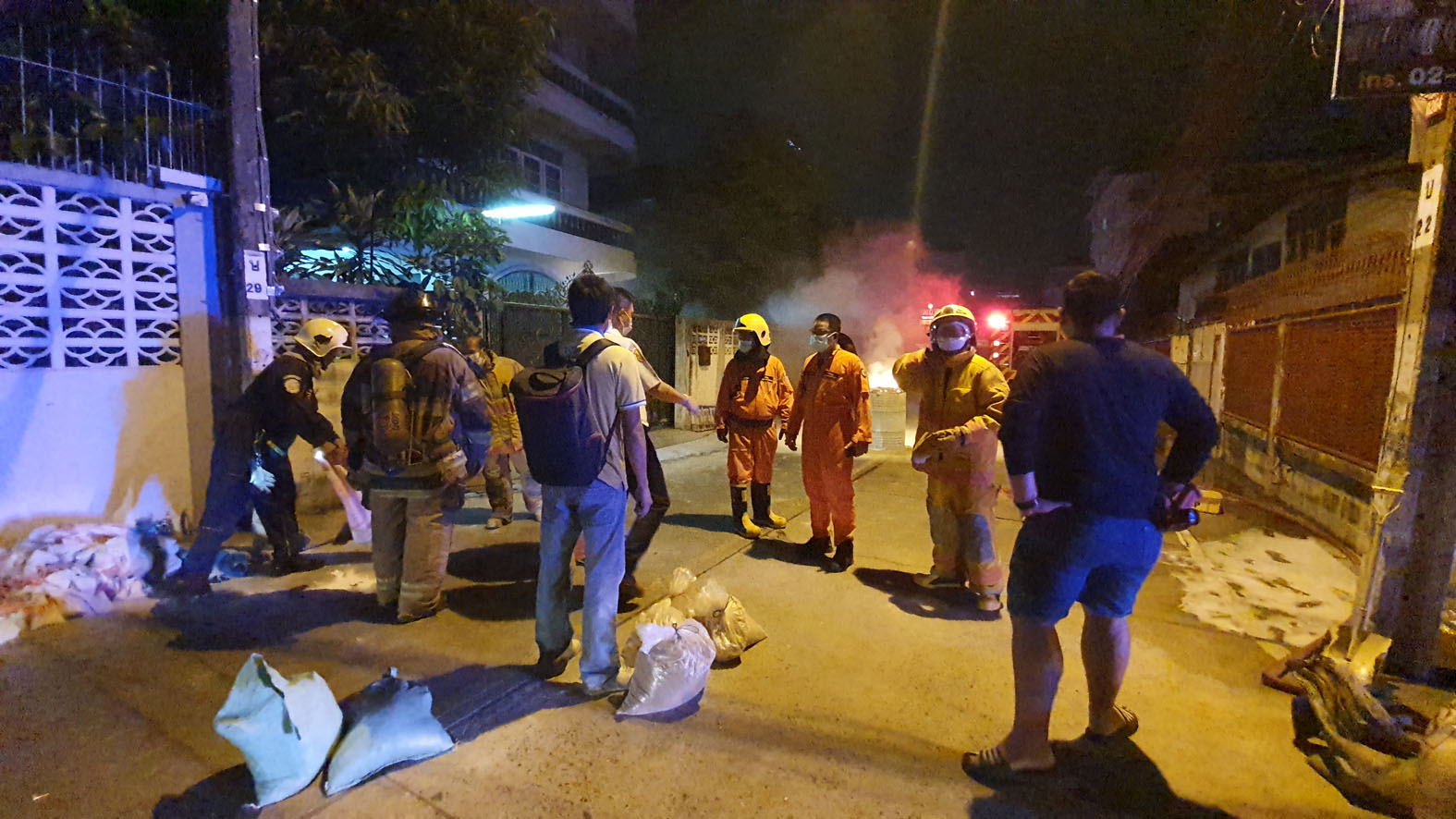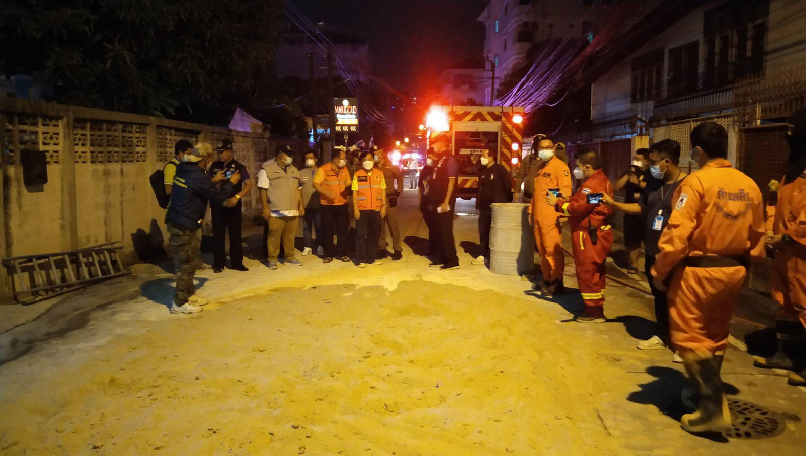 ชาวบ้านก็ตกใจพอสมควรแต่เราได้ประชาสัมพันธ์ โดยเฉพาะต้องขอบคุณสื่อที่ได้ผ่านโซเชียลต่างๆ บอกให้ประชาชนได้รับรู้ก็เป็นเรื่องที่ดี เพราะแป๊บเดียวเองที่ประชาชนได้รับรู้รับฟังสื่อต่างๆ ที่ไปลงในเพจต่างๆ ก็รู้ว่ามีอะไรเกิดขึ้นแต่ว่าไม่รู้เป็นสารเคมีตัวไหนเท่านั้นเอง ตอนนี้เรากำลังเกลี่ยทรายที่มันชื้นออกมาเพื่อให้การระเหยลดน้อยลงพอเสร็จแล้วเราจะยกไปกำจัดในที่ว่างเปล่า ยืนยันว่ายังไม่อันตรายเพราะเจ้าของเขามาเอง