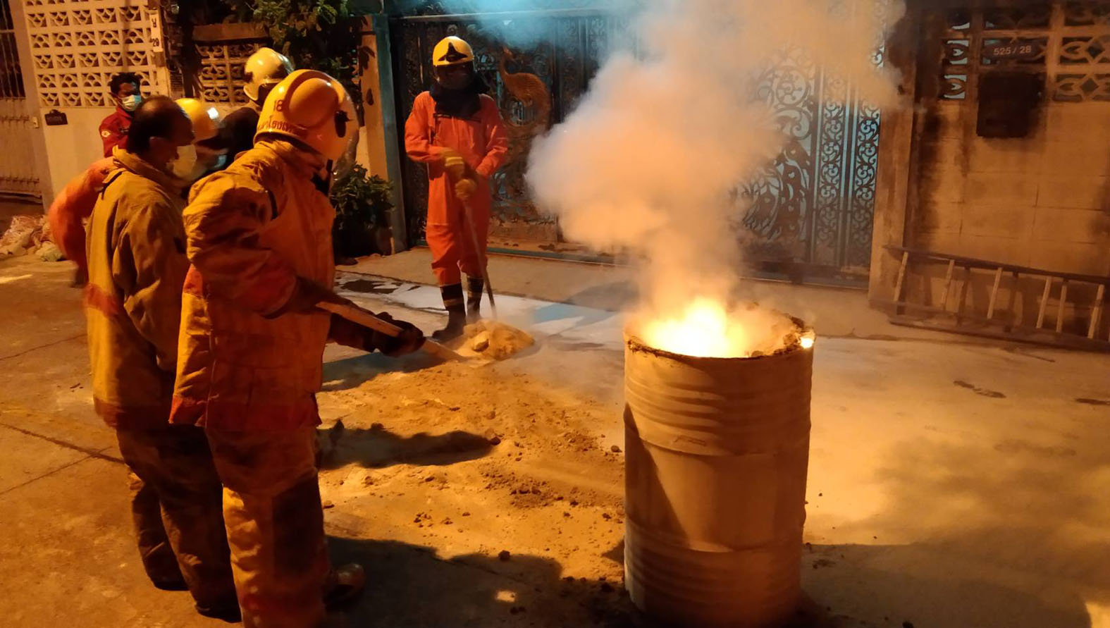 โดยจากการที่เจ้าหน้าที่เปลี่ยนการควบคุมเพลิงเป็นการใช้ทรายนั้น เพียงไม่นานเพลิงที่ลุกไหม้ก็ดับลง เจ้าหน้าที่จึงทำการเคลื่อนย้ายไปทำลายต่อที่โรงงานในซอยแบริ่ง