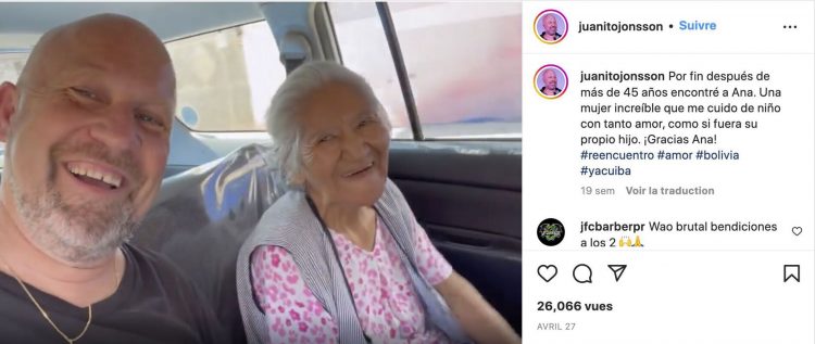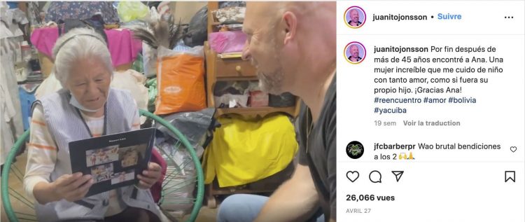45 ปีที่รอคอย! หนุ่มใหญ่สเปนบิน 9,000 กม. เพื่อมาหาหญิงชราโบลิเวียด้วยเหตุผลนี้ (คลิป)พาไปชมคลิปที่ทำให้ชาวเน็ตน้ำตาซึม เมื่อหนุ่มใหญ่ชาวสเปนรายหนึ่ง เดินทางข้ามทวีปเพื่อไปพบกับพี่เลี้ยงชาวโบลิเวีย เป็นครั้งแรกในรอบ 45 ปี