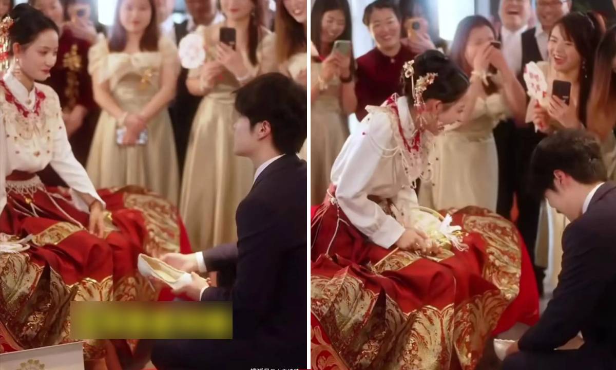 เจ้าบ่าวหล่อแสนดี คุกเข่าสวมรองเท้าให้ภรรยา เอ่ยคำขอข้อเดียว สาวๆ ฟินแทบล้มทั้งงานเจ้าสาวน่าอิจฉามาก! เจ้าบ่าวหล่อแถมคารมดี คุกเข่าสวมรองเท้าให้ภรรยา เอ่ยคำขอข้อเดียว สาวๆ ฟินทั้งงาน มีอีกคนไหมแบบนี้?!