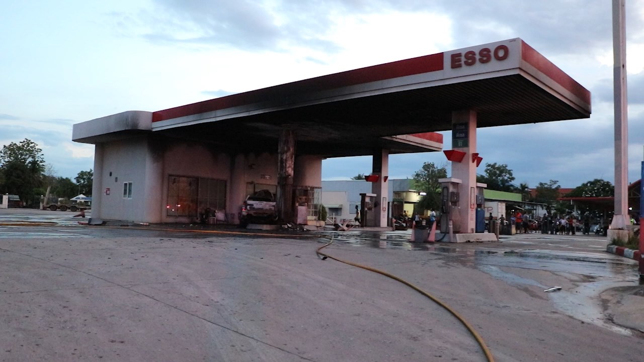 เจ้าหน้าที่สอบสวนทราบว่าก่อนเกิดเหตุมีชายหนุ่ม ซึ่งเป็นพนักงานร้านค้าวัสดุรายใหญ่ ได้ขับรถยนต์ปิคอัพคันดังกล่าว เพื่อเข้ามาที่ปั๊มน้ำมันดังกล่าว แต่ขาเลี้ยวเข้าปั้มเกิดเลี้ยวไม่พ้นขอบฟุตปาธทางเข้า และชนอย่างแรงจนยางระเบิด ก่อนรถยนต์พุ่งเข้าไปในปั๊มน้ำมันและชนเข้ากับตู้จ่ายน้ำมัน จนเกิดเป็นไฟลุกไหม้ขึ้นมาอย่างรวดเร็ว ซึ่งคนขับรถยนต์คันดังกล่าวสามารถออกจากตัวรถยนต์ได้อย่างหวุดหวิด ไหม้ที่ลุกไหม้ขึ้นอย่างแรงได้ไหม้รถจักรยานยนต์ของลูกค้าที่กำลังเติมน้ำมันเสียหายทั้งคันอีก 1 คัน พนักงานปั๊มได้รับบาดเจ็บจากไฟลวกที่ขาเล็กน้อยอีก 1 คน เคราะห์ดีไม่มีผู้เสียชีวิต