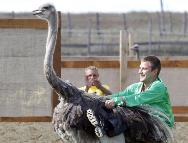 โอ๊ะโอ!! แข่งขันขี่นกกระจอกเทศ ในยูเครน