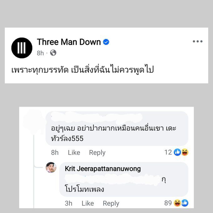 สร้างความฮือฮาบนโลกโซเชียลเมื่อ Three Man Down ได้โพสต์สเตตัสโปรโมตซิงเกิลใหม่ของวง แต่กลับมีแฟนคลับเข้ามาคอมเมนต์แซวเชิงห่วงใยว่า "อยู่เฉยๆ อย่าปากมากเหมือนคนอื่นเขา เดะทัวร์ลง555" หลังจากมีกระแสดราม่าร้อนในวงการเพลงเกี่ยวกับ "สแตมป์"