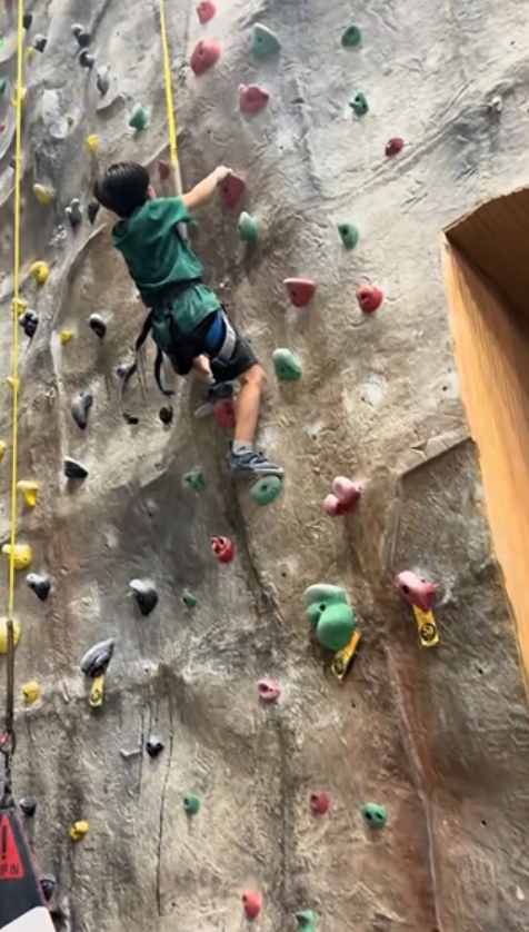 จากภาพจะเห็น น้องเกล นอกจากจะมาปีนหน้าผาด้วยแล้ว ยังเชียร์คุณแม่และพี่ชายถึงขอบสนาม ตามมาด้วยตะโกนเสียงดังฟังชัดอย่างเป็นห่วงสุดๆ ว่า "แม่ไปให้ถึงนะ แม่จับเชือกไว้"