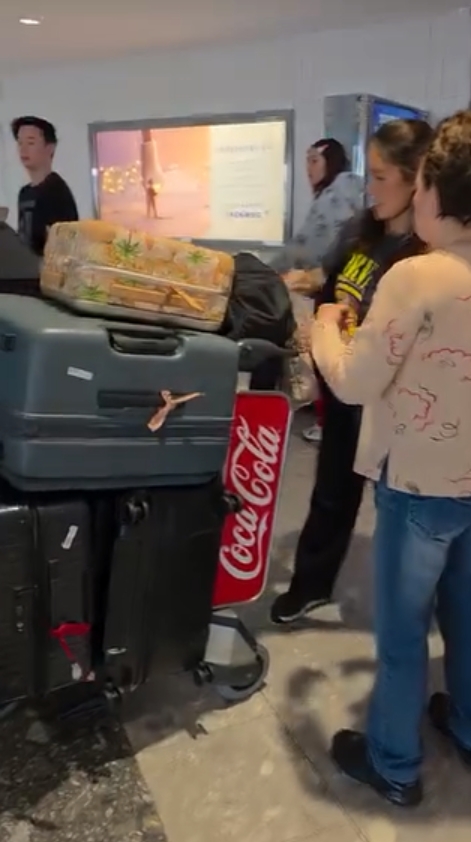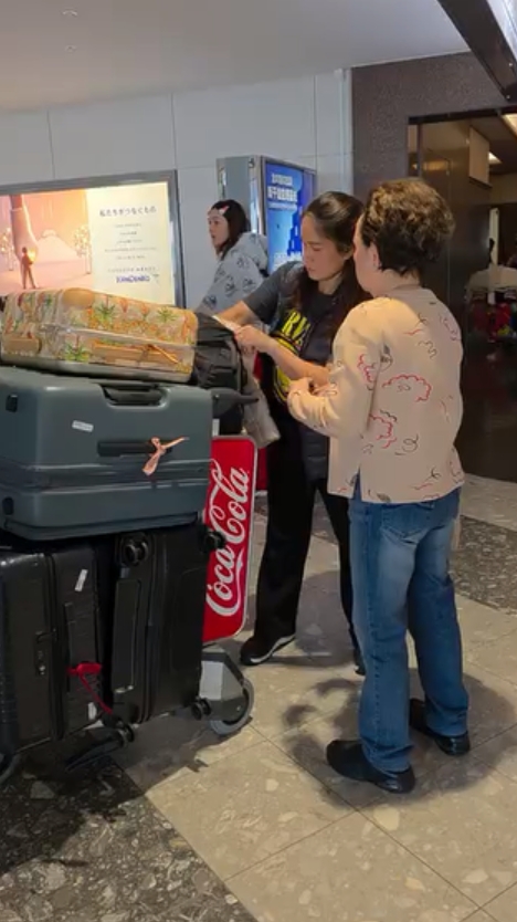 และอีกหนึ่งภาพที่แฟนคลับเห็นแล้วต่างตะลึงและเข้าใจไปพร้อมๆ กัน ในโมเมนต์ขากลับ ภาพจาก ยายหนิง ที่เผยให้เห็นรถเข็นหลายคันที่ขนสัมภาระกระเป๋าเต็มคันรถ รวมๆ แล้วเกือบ 20 ใบเลยทีเดียว