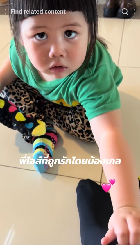 อัลบั้มภาพ คนดูหลายล้าน! คลิป "น้องเกล" ใส่ถุงเท้าให้ "พี่ไอส์" เอ็นดูบอกให้ยกขา ภาพที่ 1 / 7