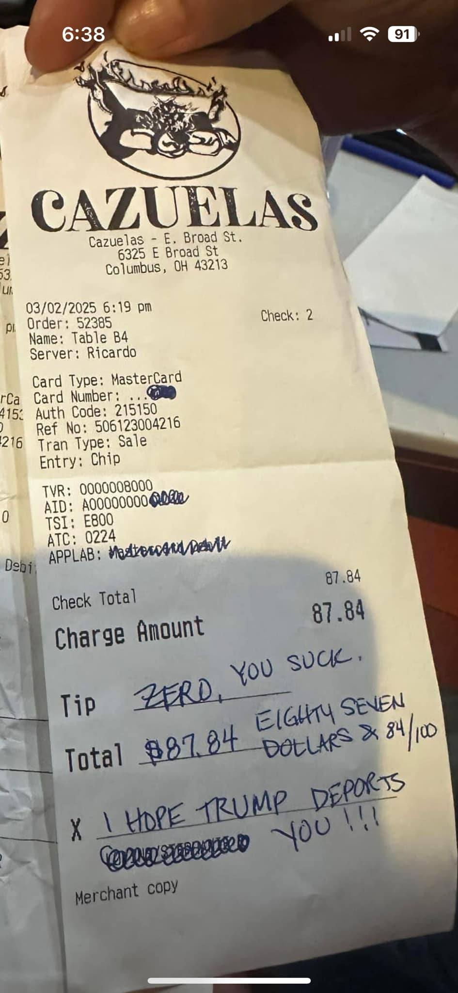 อารมณ์ชั่ววูบ! หญิงตกงานจากบริษัทเบอร์ 1 ของโลก เพราะ "เขียนข้อความลงใบเสร็จร้านอาหาร"สำนักข่าว nypost รายงานข่าวว่า มีผู้หญิงคนหนึ่งถูกไล่ออกจากงานเพราะข้อความที่เขียนบนใบเสร็จในร้านอาหารอย่างไม่เหมาะสม