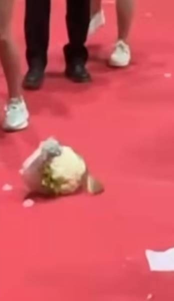 แต่สิ่งที่ไม่มีใครคาดคิดคือ หลังพิธีกรประกาศผู้โชคดี เพื่อนเจ้าสาวกลับกระชาก "ช่อดอกไม้" ที่ทำจากกะหล่ำดอก ออกจากมือเจ้าสาวแล้วโยนลงพื้น ทั้งที่แม่ของเจ้าบ่าวเป็นคนคัดเลือกและสั่งทำมาอย่างดี จากนั้นเธอก็เตะและถีบมันเหมือนลูกบอล จนช่อดอกไม้พังเละ
