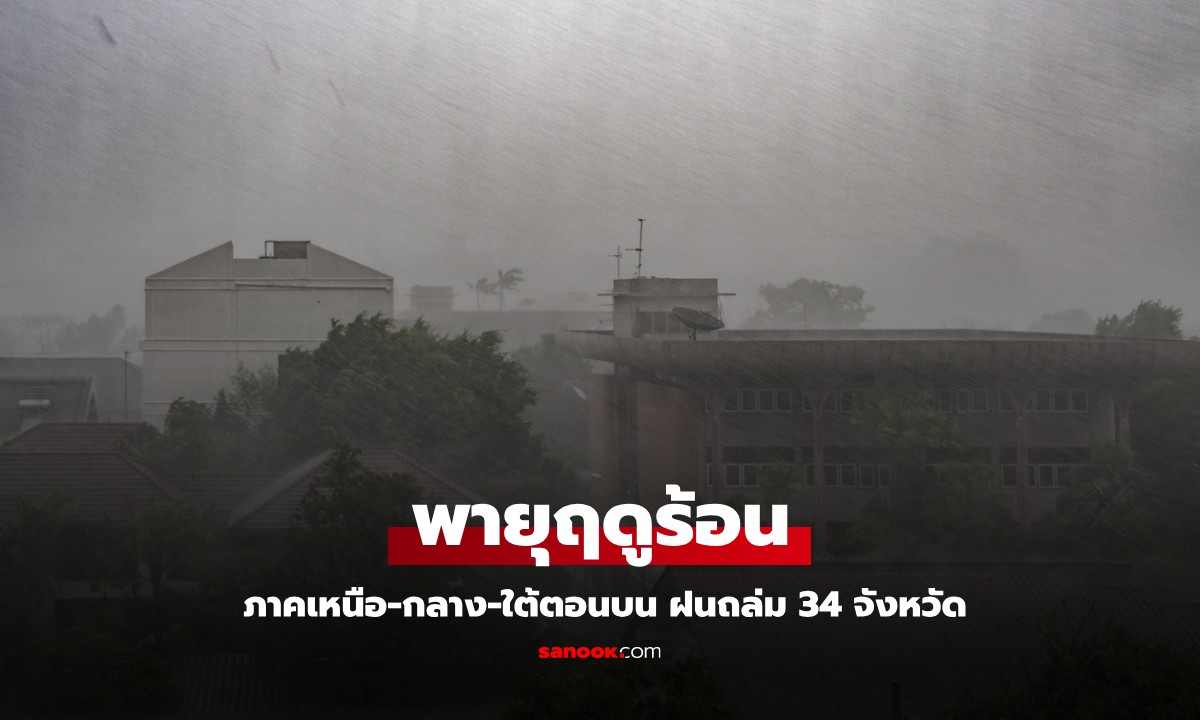 สภาพอากาศวันนี้ ไทยเจอพายุฤดูร้อน ภาคเหนือ-กลาง-ใต้ตอนบน ฝนถล่ม 34 จังหวัด