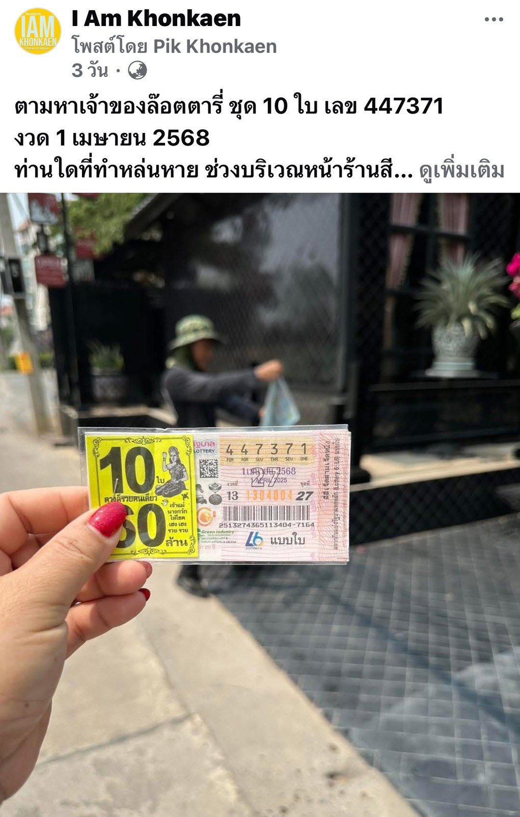 ตอบแทนความดี พนง.เสิร์ฟเก็บลอตเตอรี่ชุด 10 ใบได้ พ่อค้ามอบหวยเลขสวยให้ 2 ใบพนังกานเสิร์ฟร้านอาหารดังเมืองขอนแก่น เก็บลอตเตอรี่ชุด 10 ใบ ไว้ได้ พ่อค้าหวยโล่ง มอบหวยเลขสวยให้ 2 ใบ ตอบแทนน้ำใจ