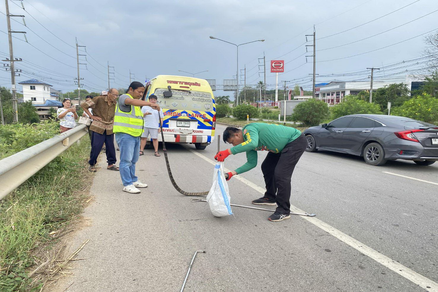 จับต้นเหตุ ทำเกิดอุบัติเหตุ "งูจงอาง" ตัวยาวเฟื้อย ก่อนเลื้อยหนีเข้ารถอีกคัน (มีคลิป)รถ จยย.หักหลบ "งูจงอาง" ที่เลื้อยอยู่บนถนน โดนรถเก๋งที่ขับตามมาเฉี่ยวชนจนล้ม ตัวต้นเหตุเลื้อยหนีเข้ารถอีกคัน