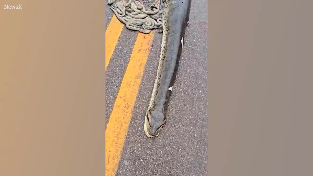 สลดกลางถนน! อนาคอนด้า "ท้องแก่" ถูกรถชน ลูกงูนับสิบร่วงจากท้อง ฉากที่ไม่คิดว่าจะได้เห็นสยองเกลื่อนถนน "อนาคอนด้า" ถูกรถบรรทุกเหยียบ "ลูกงู" ทะลักออกจากท้อง หลายสิบตัว!!!
