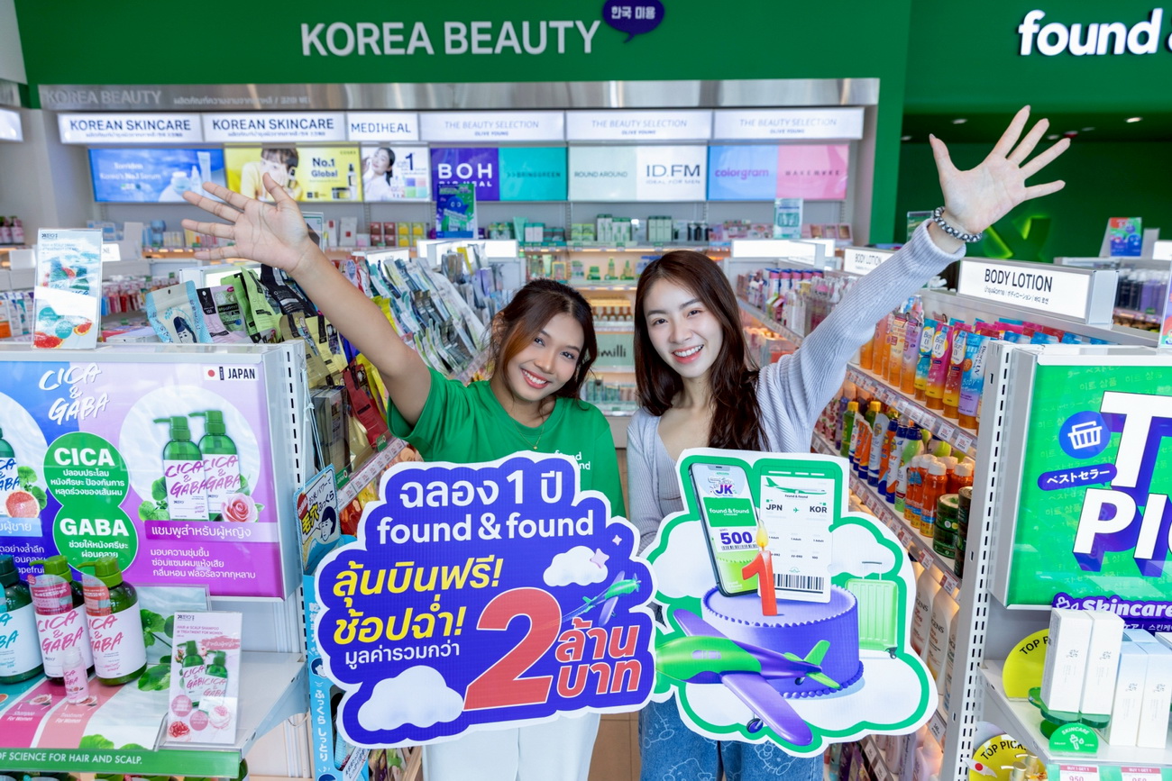 "found & found” บิวตี้เดสติเนชันสินค้าความงามจากญี่ปุ่น–เกาหลี ส่งแคมเปญพิเศษฉลองครบรอบ 1 ปี ชวนนักช้อปร่วมลุ้น บินลัดฟ้าฟรี ช้อปฉ่ำที่ ญี่ปุ่น เกาหลี กับเที่ยวบิน “found ช้อปฟิน IN JK” และลุ้นรับ ของรางวัลอื่นๆ อีกมากมาย เพียงซื้อสินค้าที่ร่วมรายการในร้าน found & found ครบทุก 690 บาท จะได้ลุ้น 1 สิทธิ์ ยิ่งซื้อเยอะ ยิ่งมีสิทธิ์เยอะ ร่วมเป็นหนึ่งในผู้โชคดีลุ้นรับของรางวัลกว่า 111 รางวัล รวมมูลค่ากว่า 2,000,000 บาท สามารถร่วมสนุกลุ้นรับโชคกับแคมเปญนี้ได้ ตั้งแต่วันที่ 1 ก.ค.-31 ส.ค. 2568 นี้เท่านั้น