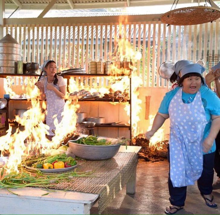 แทบจะทุกมุม ทั้งในบ้าน ครัวนอกบ้าน และโรงสีข้างบ้าน ถ้าเป็นบทบู๊ เขาจะเซตฉากในโรงสี ส่วนห้องครัวที่แยกออกมาจากตัวบ้าน ญาติๆเรียกว่า "ครัวเล้าไก่" เพราะดูโปร่งๆโล่งๆ โดยทีมงานเซตอุปกรณ์ประกอบฉาก เป็นได้ทั้งครัวไทยที่มีเตาโบราณ (เตาแกลบ) และครัวเตาแก๊ส อย่างเตาโบราณมีพระเอกชอบแล้วมาขอซื้อ แต่ขายไม่ได้เพราะต้องใช้เข้าฉากละคร