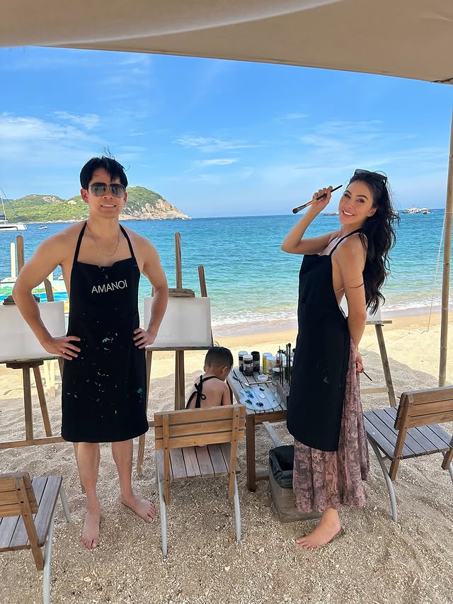 ซึ่งก็ได้เห็น ศรีริต้า-กรณ์ พักผ่อนกันแบบเต็มที่ได้ใช้เวลากันพร้อมหน้าพ่อแม่ลูก อย่างเช่น กรณ์ กับลูกชาย น้องกวิณท์ ที่นั่งวาดรูประบายสี เดินเล่นชิลๆ ริมทะเล เล่นน้ำในสระว่ายน้ำ