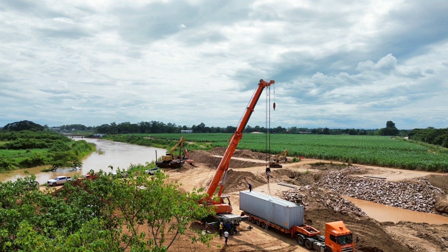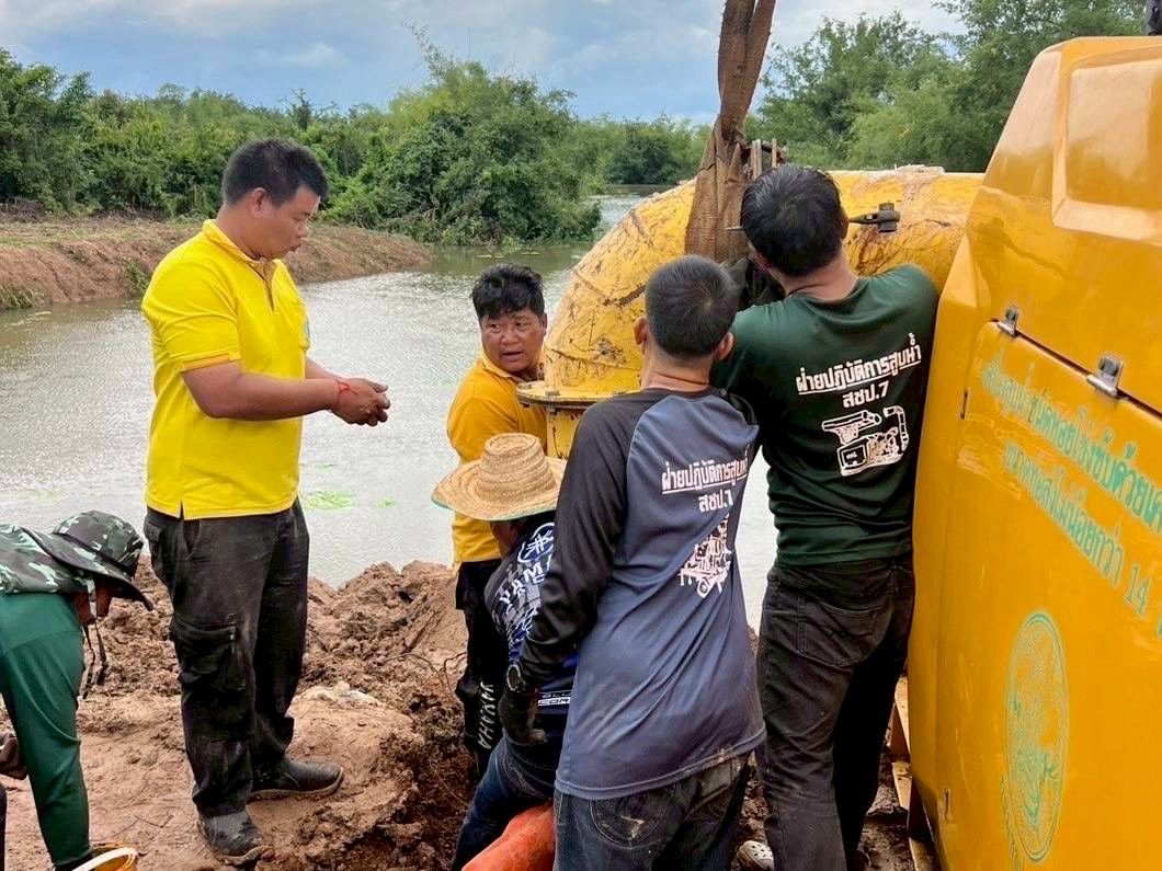 - จัดเตรียมเครื่องจักรกลและอุปกรณ์ช่วยเหลือ อาทิ เครื่องสูบน้ำ เครื่องผลักดันน้ำ รถขุด รถแบคโฮ และเรือผลักดันน้ำ ประจำจุดเสี่ยงน้ำหลาก