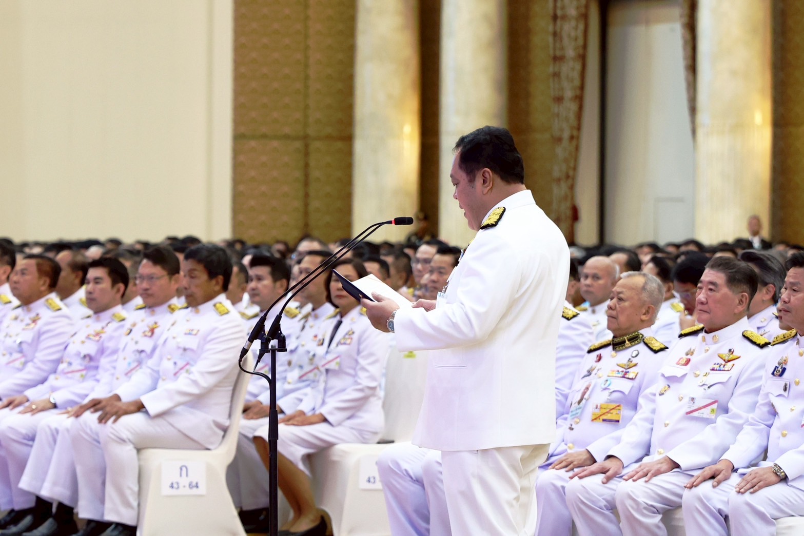 พลตำรวจโท ภาณุรัตน์ หลักบุญ เลขาธิการคณะกรรมการป้องกันและปราบปรามยาเสพติด (เลขาธิการ ป.ป.ส.) กล่าวว่า “การดำเนินงานกองทุนแม่ของแผ่นดินได้ก้าวสู่ทศวรรษที่ 3 ซึ่งเป็นวาระสำคัญในการขับเคลื่อนภารกิจป้องกันและแก้ไขปัญหายาเสพติดในหมู่บ้านและชุมชนตามพระราชปณิธานฯ สำหรับงานมหกรรมในปี 2568 นี้ นับเป็นพระมหากรุณาธิคุณอย่างหาที่สุดมิได้ ที่พระบาทสมเด็จพระเจ้าอยู่หัว ทรงพระกรุณาโปรดเกล้าฯ ให้ สมเด็จพระนางเจ้า ฯ พระบรมราชินีเสด็จฯ แทนพระองค์ เป็นองค์ประธานในพิธีพระราชทานเงินพระราชทานขวัญถุงกองทุนแม่ของแผ่นดินให้แก่หมู่บ้านชุมชนต้นกล้ากองทุนแม่ของแผ่นดิน ประจำปี 2568 จำนวน 1,528 แห่ง โดยมีผู้ว่าราชการจังหวัดและผู้ว่าราชการกรุงเทพมหานครเป็นผู้แทนเข้ารับพระราชทาน พร้อมผู้แทนภาคประชาชนกองทุนแม่ของแผ่นดินจากทั่วประเทศเข้าร่วมงาน ทั้งนี้ ความสำเร็จที่เป็นรูปธรรมของกองทุนแม่ของแผ่นดินตลอดระยะเวลาที่ผ่านมา ได้ช่วยยกระดับคุณภาพชีวิตของประชาชน สร้างความเข้มแข็งให้ชุมชนสามารถจัดการปัญหายาเสพติดด้วยสันติวิธี มีการส่งเสริมอาชีพตามความถนัด ตลอดจนให้การดูแลและให้โอกาสแก่ผู้เคยผิดพลาดจากยาเสพติดได้กลับมาใช้ชีวิตในสังคมอย่างสงบสุข ควบคู่ไปกับการสร้างกลไกเฝ้าระวังเพื่อความปลอดภัยในชีวิตและทรัพย์สิน ปัจจุบันมีหมู่บ้านชุมชนที่เข้าร่วมโครงการกองทุนแม่ของแผ่นดิน รวมทั้งสิ้น 28,646 แห่ง ส่งผลให้มีจำนวนหมู่บ้านกองทุนแม่ของแผ่นดินทั่วราชอาณาจักรรวมทั้งสิ้น 30,174 แห่ง ซึ่งสะท้อนถึงความสำเร็จเชิงคุณภาพที่สำนักงาน ป.ป.ส. มุ่งมั่นผลักดันมาอย่างต่อเนื่อง”