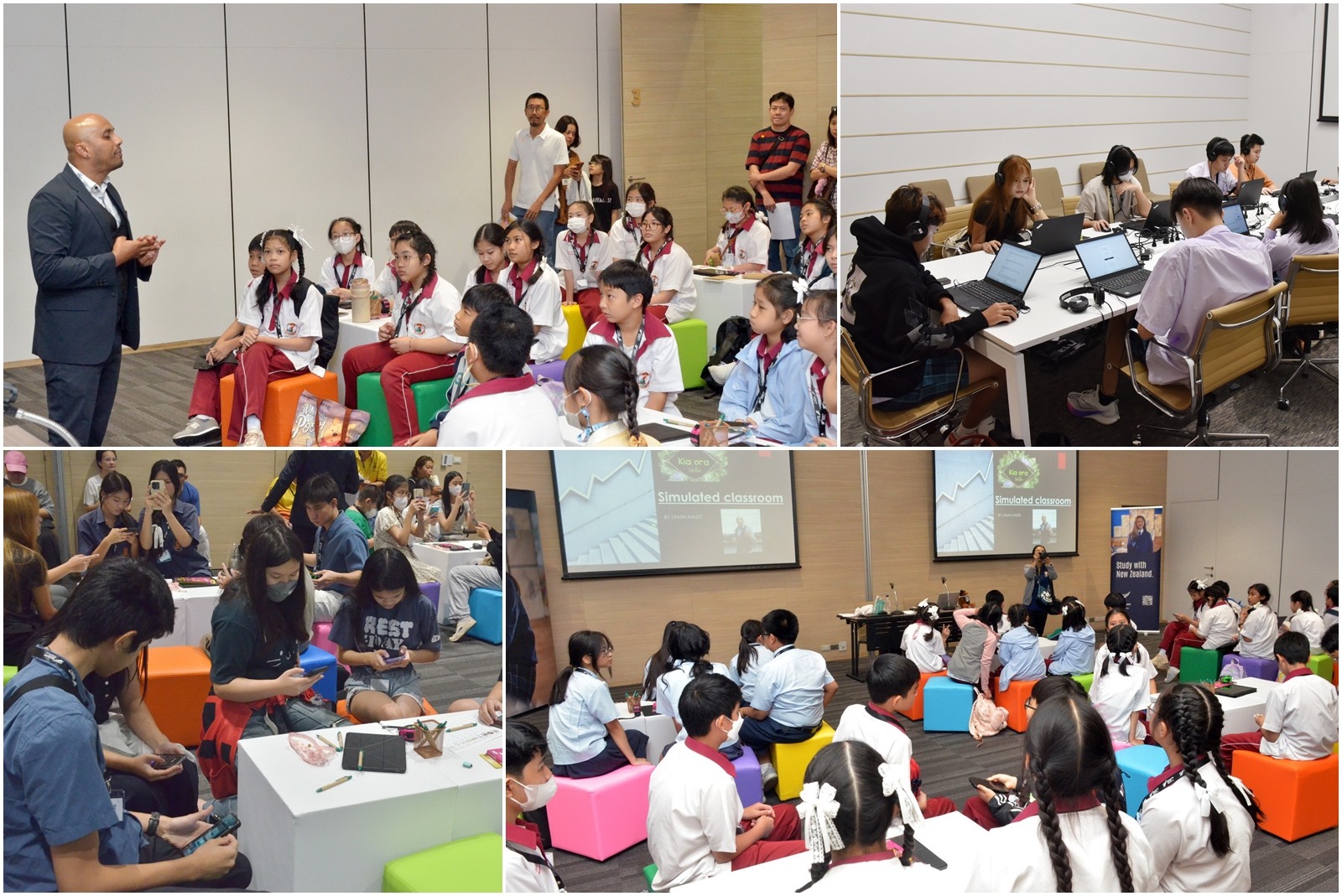 น้องๆที่มาร่วมงานยังได้ เปิดประสบการณ์ห้องเรียนจำลองที่ยกเอาคลาสเรียนจากคุณครูนิวซีแลนด์มาให้นักเรียนไทยได้สัมผัส พร้อมฟังข้อคิดดีๆกับคุณสู่ขวัญ บูลกุล พิธีกรและอินฟลูเอนเซอร์ชื่อดัง ที่มาแชร์ประสบการณ์ตรง ในช่วงเสวนาพิเศษ “ทำไมถึงเลือกนิวซีแลนด์ให้ลูกเรียน ตั้งแต่มัธยมจนถึงมหาวิทยาลัย” และพูดคุยกับ แพรวา-ณิชาภัทร ฉัตรชัยพลรัตน์ นักแสดงและนักร้องชื่อดัง ศิษย์เก่านิวซีแลนด์ ที่มาร่วมแบ่งปันและชวนน้องๆเปิดประสบการณ์การศึกษานิวซีแลนด์