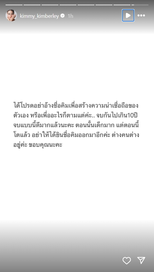 "คิมเบอร์ลี่" เชือดนิ่มๆ อ่านแล้วมีสะดุ้ง จบแบบนี้ดีมากแล้ว"คิมเบอร์ลี่" เชือดนิ่มๆ อ่านแล้วมีสะดุ้ง จบกันไปเกิน 10 ปี แบบนี้ดีมากแล้ว