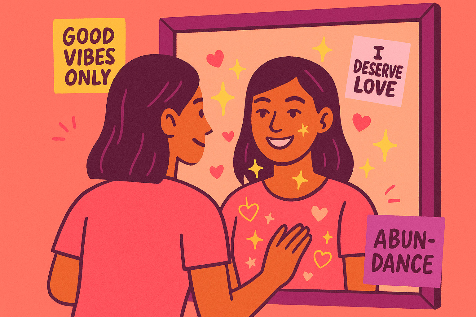 ประโยคสั้นๆที่เต็มไปด้วยพลังงานดีๆ สามารถช่วยปรับเปลี่ยนวิธีคิดได้ เช่น “ฉันคู่ควรกับความรัก” “ฉันเปิดรับทุกโอกาสดีๆ” หรือ “ฉันคู่ควรกับความเพียบพร้อม” การใช้คำพูดเหล่านี้กับตัวเองสม่ำเสมอ จะช่วยเสริมความมั่นใจและลดความสงสัยในตัวเอง เคล็ดลับคือการพูดยืนยันกับตัวเองซ้ำๆ หรือลองพูดให้ได้ยินเสียงก่อนนอน ขณะแปรงฟัน หรืออาจอัดเสียงไว้ฟังซ้ำๆระหว่างวัน